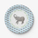 Paper plates with images of adorable baby elephants. The background, image and text can be personalized. Original artwork by W.B.