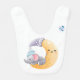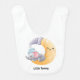 An adorable and cute sleeping baby elephant in a crescent moon design on this baby bib. Personalize with babies name or text. Makes a great baby shower gift or gift for the new baby and new parents.