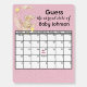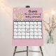 Cute elephant with crescent moon, flowers, gold glitter, stars, polka dot background, and calendar for guessing the arrival date of the new baby.