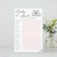 This charming hand-drawn illustration features a baby elephant sitting among delicate peonies, balloons and eucalyptus leaves, creating a serene and whimsical atmosphere for your baby shower baby animal game. This comes with a full coordinating baby shower collection. Many options with this coordinating collection.