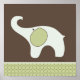 This baby's room elephant poster is designed with circles under the feet placed on a dark brown background.