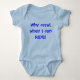 I love this onesie, it's adorable! The material is amazing so soft and the color is a perfect sky blue. When my daughter-in asked me to help with her Baby Shower, I was thrilled. It was co-ed & the theme was Cookie Monster. I had no idea that the whole world was after that big blue Monster. Thank goodness for Zazzle, I got most of the party supplies here. Then I found this onesie! They made my customization so easy. The colors are awesome. I wrote the word "Loved" across the bottom of the Cookie Monster in red letters when I was putting it together. I saw the preview & liked it. But to see it in person, OH, it was fantastic, they do exceptional work! I am so glad that I found this onesie/bodysuit. The production time and shipping were exactly what I was told, which made it easy to plan the party. Packaging was nice as well. If you are looking at this product, look no further, I highly recommend it! I'm certain that I'll be back to "design" whatever my new Grandson "needs.". The printing on the onesie/bodysuit is crisp, and clean. With perfect colors that blend well with the blue background of the basic material. We are so happy with how it came out.