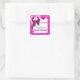 Baby favors announcement pink bear square sticker