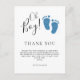 This cute boy's baby shower thank you postcard features the text "Oh Boy!" in stylish script typography with blue glitter baby feet.