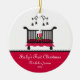 Elegant Black crib with red bedding and 1st Christmas Stocking Baby First Christmas. Add your newborns name and birth date. Perfect for holiday gifts or send as a birth announcement. Remember to add a photo of your little one on the back of the ornament!