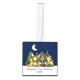 Baby's First Christmas Watercolor Woodland Animals Forest Animals Pine Trees Moon, Starry Sky and Snow Photo Cube Ornament . Baby Animals include Bear, Deer, Moose, Raccoon, Bunny Rabbit, Fox and Owl with forest greenery. Add Name. 3 Photos. Blue Text.