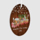 Baby First Christmas Ornament includes Watercolor Gingerbread Train with candy, cookies and pines. String Lights. Rustic Country Wood Print.