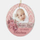 Baby First Christmas Photo Ornament Personalized. Elegant, classy and decorative Christmas ornament for your baby, decorated with warm pink damask pattern and beautiful pink roses.