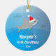 A baby’s first Christmas ornament that features a cute shark, in a Santa hat, swimming in the blue ocean. Simply add your baby’s name & the year, add this ornament to your cart, then enjoy it on your tree.