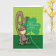 Wish a baby who is celebrating his or her first St. Patrick’s Day a shamrock full of luck! A cute monkey is showing you just how high that luck really is!