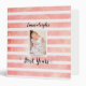 Soft, watercolor, girly peach coral and white stripes background, celebrating a new baby girl. Name and photo, with "First Years" under photo on front. On back, cute, pink, flamingo with white sea clam shells in background.