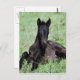 Baby foal lying in the meadow postcard