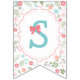 This baby shower bunting banner features a floral motif with sweet baby foxes and cute peacocks, all of which are done in in both turquoise and coral hues.