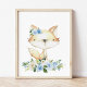 Baby Fox, Woodland Animals, Boho, Blue Flowers Poster