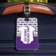 Oversized elegant argyle pattern in school colors of purple and silver gray set the backdrop for this cute baby ID tag design. A white baby bodysuit on the front states that you have the best baby ever, while the back includes your child's name and parents' contact information. Design comes in maroon and gray, burnt orange and gray, red and black, green and black, orange and navy, green and yellow, and purple and gray. Matching products available.