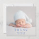 Baby Gift Thank You Newborn Baby Shower Thank You Cards features your favorite photo with the text "Thank You" in elegant modern blue script on the front and an additional photo and your personalized message on the reverse. Personalize by editing the text in the text boxes provided. PHOTO TIP: center your photo before uploading to Zazzle for best results. Designed by ©Evco Studio https://www.zazzle.com/store/evcostudio