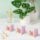 Baby Shower Favors. Pretty watercolor art showing a little baby girl with a pink bow sitting next to her Apricot Poodle surrounded by flowers. It's a girl! Pink and purple.
