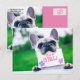 Personalize this baby girl announcement with a photo of an adorable dog holding a birth announcement card. Both front and back are customizable with the ability to add birth due date and ways to follow on Social Media.