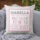 Adorably cute pink and gray striped baby girl birth announcement pillow with a sweet pink baby elephant. Edit to include all of your precious bundle of joy's birth details.