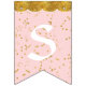 This is the perfect baby shower decor item that becomes a gift for the baby's nursery when the shower is over. Shown here with an 8 letter name, you can make it shorter or use first and middle name. Anything that fits on the banner. We are happy to customize it for you if you contact us. Ballet Baby Collection has a pattern of wide white stripes with a gold glittering edge on the diagonal reversing to form a chevron pattern at each edge. A scalloped faux gold glitter pattern border carries across each pennant bunting flag. The letters are hand calligraphy style font in a bold, easily read all capitals with a sparkling glitter confetti raining down around them. On either end there is a hand painted blush pink tutu with sparkling jewels and ruffles. An additional painting of a pair of satin toe shoes with entwined ribbon ties completes the design. There is a complete set of party decor items including paper plates, cups and napkins so throwing a beautiful, personalized shower just became a breeze! You can customize the text as you wish using the template forms. We can also customize this for your special event, name or? Just message us and we'll be happy to help. Copyright all rights reserved.