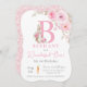 Baby girl peter rabbit 1st birthday, pink monogram invitation