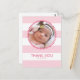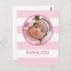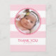 Baby or Toddler Girl Photo Thank You Card // Flat Note Card // Features a light pink and white stripe background with hot pink dotted circle photo area. // A perfect, personalized way to say 'thank you' to family and friends for baby gifts.