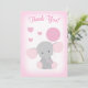 Baby Girl Shower Thank You Card Elephant Pink Gray