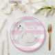 Baby Girl Swan Girly Pink Script Baby Shower Paper Plates