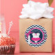 Navy and white chevron print with hot pink accents and a polka dot jumper tutu and 3D-look ribbon trim girl baby shower gift label.