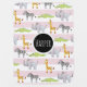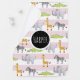 This adorable and cute baby blanket features a pattern of watercolor elephants, giraffes, zebras and crocodiles on a background of pink stripes, and has place for you to add your baby girl's name in a gorgeous typography. Check out the rest of our collection for other cute safari animals!