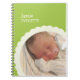 Chic, contemporary yet cute. This personalized journal features your favorite photo enclosed in a scallop circle frame. Two lines of text are set in the most adorable typeface against a micro polka dot background. Customize this spiral notebook with baby photo for first time parents or grandparents. This notebook makes a great gift for anyone who like to write or doodle.