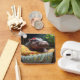 The key chain is made of metal and really sturdy. The flower design is really cheerful. The logo and colors are clear and crisp!