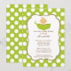 Adorable Boy Baby Shower invitation featuring a cute baby in a sweet pea pod set on a green & white polka dots background. Matching items available in our shop. Perfect for a baby boy, baby girl or neutral baby shower. ©JD Digi Designs