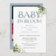 Baby In Bloom Dusty Blue Foliage Photo Baby Shower Invitation