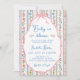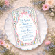 A soft vintage-inspired baby shower invitation with delicate watercolor wildflowers in pastel pink and blue tones. The striped floral background creates a light, elegant feel, while the scalloped frame and pink bow add a sweet and timeless touch. Matching items available.