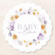 Celebrate a special Baby Shower with these elegant "Baby in Bloom" paper coasters! Featuring a delicate floral wreath in soft pastel tones of lavender, cream, and yellow, these beautiful coasters are perfect for decorating your tables and serving drinks in style. A charming and sophisticated touch to your celebration, these coasters add warmth and elegance to any floral-themed baby shower.