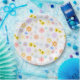 Celebrate the arrival of a little one with this charming floral pattern paper plate, designed to complement a floral or spring-themed baby shower. Featuring a soft pastel daisy pattern in peach, lavender, and golden yellow, this design adds a whimsical and vintage-inspired touch.