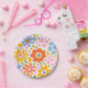 Baby in Bloom Retro Groovy Wildflowers Baby Shower Paper Plates