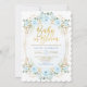 Baby in Bloom Soft Blue Gold Floral Boy Shower Invitation