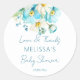 Baby in bloom spring summer flowers baby shower thank you favor stickers, pastel blue and white buttercup daisies flowers for spring summer garden themed baby shower thank you stickers