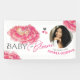 Cute pink whimsical baby in bloom baby shower banner with photo of the honoring lady or couple. Other matching baby shower items in this design are also available or can be created by request. Personalize with your own baby shower details and photo. © Unique whimsy baby in a bloom hand watercolor painting and design by Sarah Trett exclusively for www.mylittleeden.com only on Zazzle.