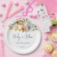 Baby in bloom meadow colorful dusty blue flowers baby shower wildflowers printed paper plates template. Watercolor wildflowers mixed colors dusty blue for a garden flowers themed baby shower personalized tableware