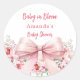 Baby in Bloon pink florals bow Baby Shower Classic Round Sticker