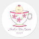 Make cupcake toppers, seal your envelopes or decorate your favor bags with these adorable baby shower stickers featuring a baby girl inside a tea cup. Great for tea party baby showers!