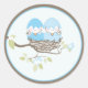 Adorable Twin Birds in Nest favor sticker. Matching invitations, thank you cards and postage stamp.