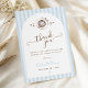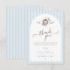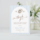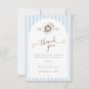 A coordinated thank you card featuring soft blue stripes and charming hand drawn art. A heartfelt and stylish way to express gratitude after your baby shower celebration.