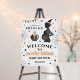 Watercolor black orange baby is brewing with pregnant momma witch gender neutral baby shower welcome sign, foam board.
