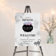 This cute Halloween gender reveal welcome sign features the text "A baby is brewing" and is accented with a witch's pot bubbling pink and blue. Welcome you guests with this ghoulish sign to your fall gender reveal party.