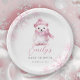 Cute and practical winter-themed paper plates featuring a pink baby bear. Designed to match your winter wonderland baby shower décor.