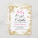 This baby shower invitation features the words "baby it`s cold outside" decorated with gold snowflakes on a white background. If you have any questions or special requests about our baby shower invitation postcards, please send us an email at mylini.design@gmail.com.